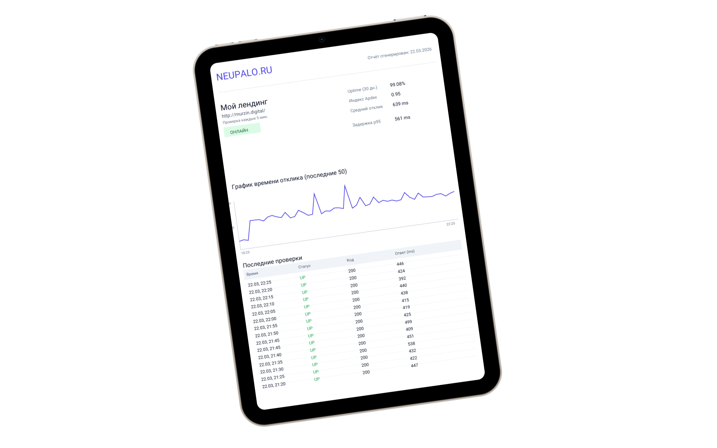 Uptime-Monitoring ist die automatische Überprüfung der Verfügbarkeit Ihrer Website. Unser Service sendet alle paar Minuten eine Anfrage an Ihre Website und prüft, ob sie korrekt antwortet. Wenn Ihre Website ausfällt, erhalten Sie sofort eine Benachrichtigung.